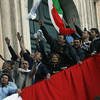 Their leader Fini, who once called Mussolini “the greatest statesman of the 20th century,” now claims to head a post-Fascist, non-racist, “modern” right-wing party. But the Alleanza Nazionale rank and file, including the braying imbeciles thrusting their arms skyward in the Fascist salute, pays no mind to their leader’s PR gestures. They believe the Mussolini years were glorious and they are passionate supporters of Fascism’s violent, racist, and misogynistic ideology. It may not be the 1920s all over again, but it’s certainly, chillingly close enough.