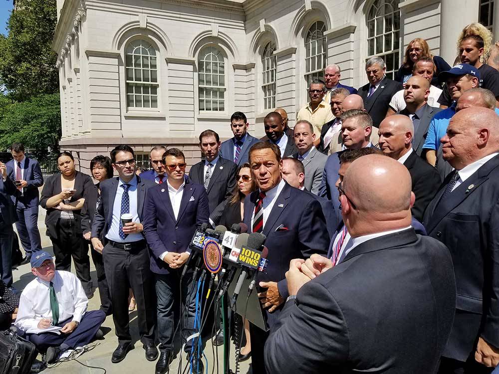 Il numero dei media newyorkesi e nazionali presenti infatti era maggiore rispetto a quello dei politici locali e dei rappresentanti di organizzazioni comunitarie a protestare sulla scalinata di City Hall.