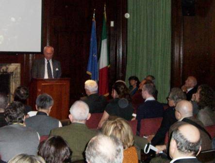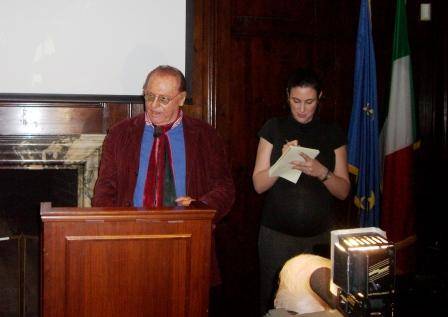 When we got there, the first thing we noticed was a group of very young students standing in front of the institute waiting for the event to start. While they were talking and exchanging laughs, other people arrived. They were all well-dressed and their smiling faces witnessed a visible excitement. The institute had never been so crowded. In the foyer a long table was being set up, and it foreshadowed the rich buffet that would be serevd a few hours later. It was only 6:00 pm but it was already impossible to find a seat in the conference room. The Many gave up trying to find a spot and instead they sat outside, waiting to watch the event on a wide-screen.