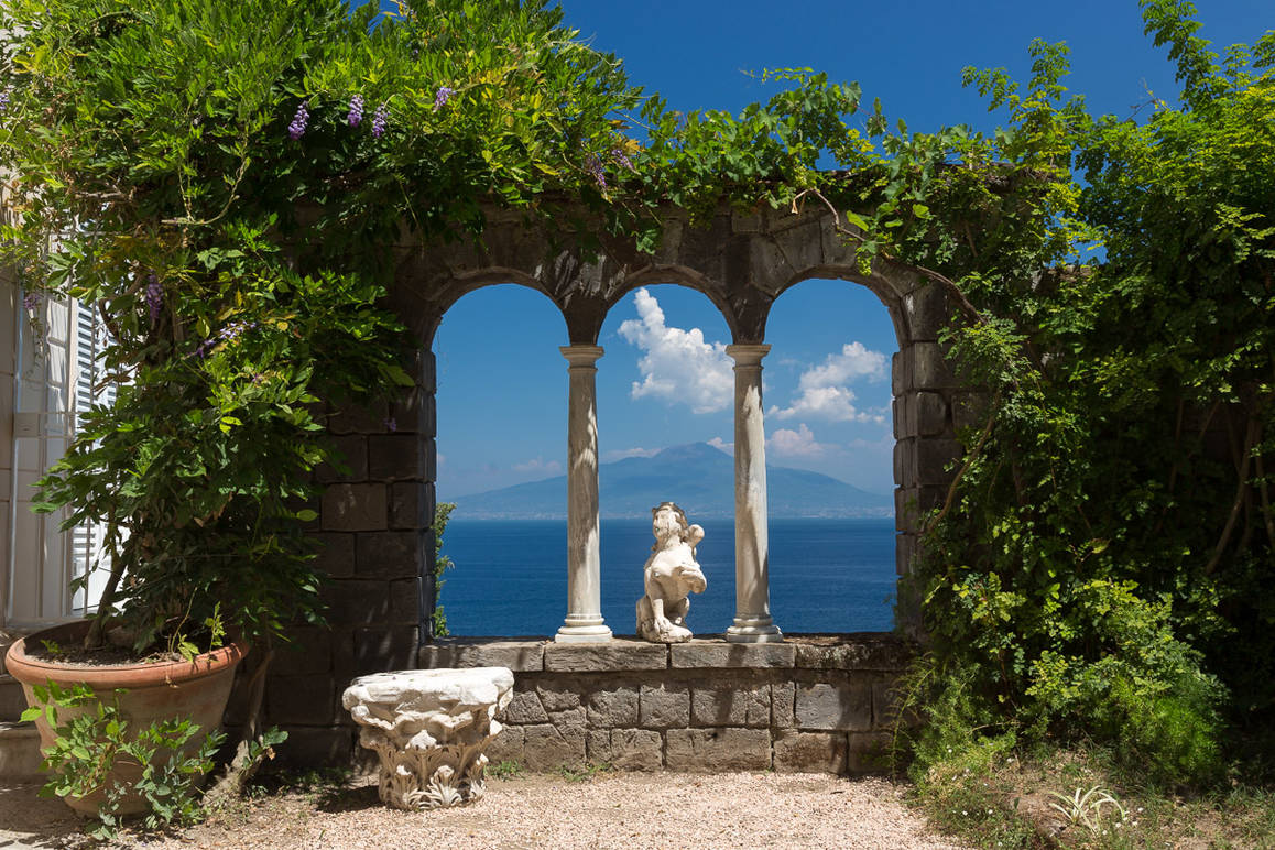 Arched openings are strategically inserted in the walls to offer spectacular views of the Mediterranean Sea framing the marvelous nature of Vesuvius.