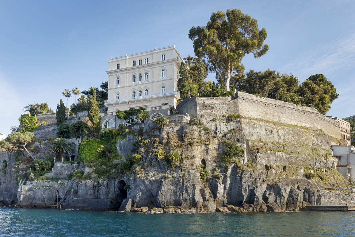 The villa is located in one of the most spectacular view point of the Amalfi coast, inserted between Sorrento and Capri, the lush gardens spill down the rocky promontory dominating the bay of Naples.