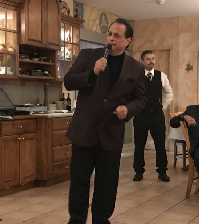 Continuing the entertainment for the evening, a friend of Maietta and avid Frank Sinatra singer, Eddie Sessa, sang “That’s America to Me.” Maietta then called American operatic tenor Daniel Rodriguez, who sang “God Bless America” over the phone from California. The whole room began singing along with him.