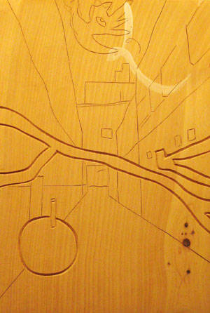Incisioni su nobile e profumato legno di cedro, eseguite da giovani artigiani di Marrakech sotto lo sguardo vigile dell'autore, che su di esse in seguito è tornato ad operare dipingendole parzialmente o totalmente, oppure effettuandovi degli interventi extrapittorici.