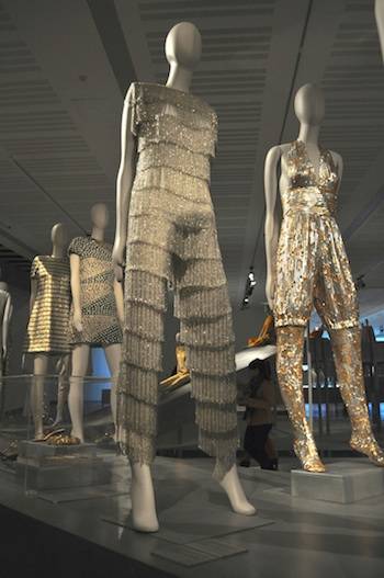 As the wall labels (in Italian and English) explain, the show does not present a history of clothing but “stages a selection of outfits by a series of authors to whom is due the very identity of Italian fashion, revealing its themes and distinguishing features.”