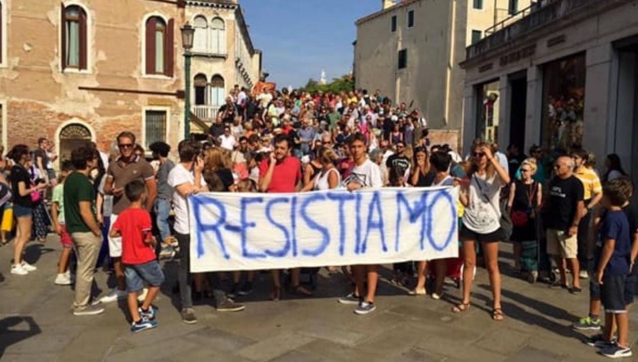 "One of the group's demands is to have a more serious management of the tourist influx. Under Luigi Brugnaro a modest beginning was made in June in an experiment that allows residents precedence over tourists on the ever crowded vaporettos that ply the Grand Canal.". Really? How? I do not see it. We have here for 32 years. We live not far from Ca'd'Oro. We have our Carta Unica (ex-Carta Venezia, ex-carta iMob) but I see nothing. Of course these people objecting to the onslaught of far too many tourists from these monster-ships are completely correct. They are up against the take-the-money-and-run business leaders. It is an old fight that these young people, all of us, must keep fighting ... and especially right now with multinational corporations seeking the ultimate powder to overrule any attempt at control over their devastating and destructive behavior being made by democratic governments through schemes like the TPP, TTIP and TiSA. The politicians supporting those schemes same politicians that would exploit Venezia literally to death. That used to be called "killing the golden goose". Every single politician that supports these profits-above-all-else people needs to be targeted and removed from office as quickly as possible. No exceptions. We have to focus on their removal because they are a threat to all of us and to our precious beni culturali. These beni culturali, if lost, will be lost forever and if we do nothing to stop this, we will not ever be forgiven by history. Nor we should we be forgiven!