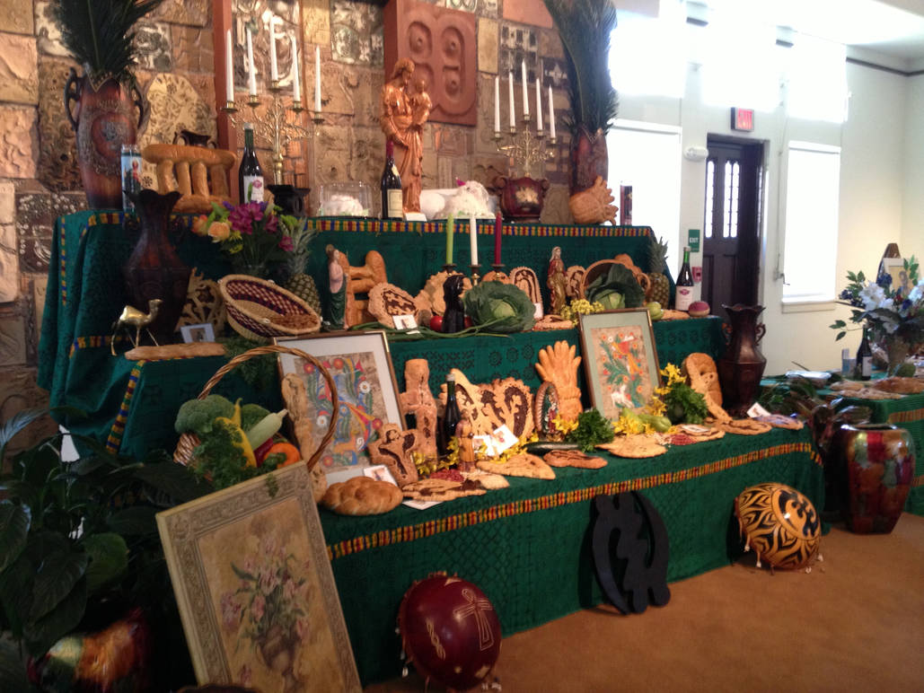 The main component of St. Joseph’s Day celebrations is the building of elaborate St. Joseph’s Day altars. The altars represent the Holy Trinity and are divided into three sections with a statue of St. Joseph at the head. Candles, figurines, flowers, and medals are often placed around the altars, which are built in both churches and homes.