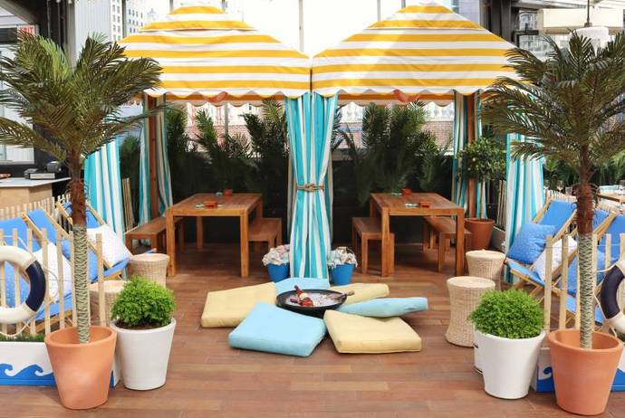 Never would I have thought that I could re-relive those moments back in Manhattan, at Eataly's new pop-up restaurant Sabbia (Sand). Located on the rooftop of the beloved Flatiron location, Sabbia is a slice of the Mediterranean in the middle of the concrete Jungle, a place that comes complete with cabanas, colorful lounge chairs and palm trees.