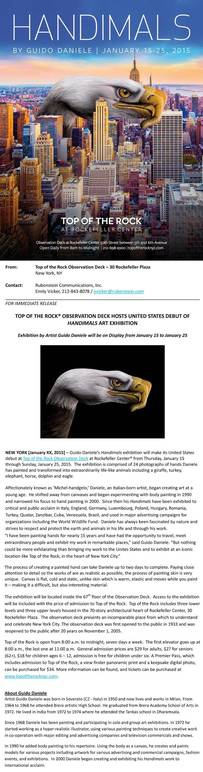 Top of the Rock Observation Deck at Rockefeller Center will host the United States debut of Guido Daniele's Handimals art exhibit.