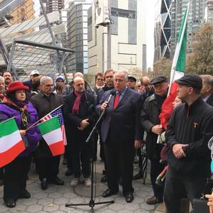 Con bandiere, sciarpe e fazzoletti tricolore, una cinquantina di membri di organizzazioni italoamericane ha preso parte al rally di sabato a Columbus Circle organizzato il giorno successivo la prima riunione nel Queens della Commissione esaminatrice dei “symbols of hate” voluta dal sindaco de Blasio, nel cui calderone si è ritrovato il Grande Navigatore