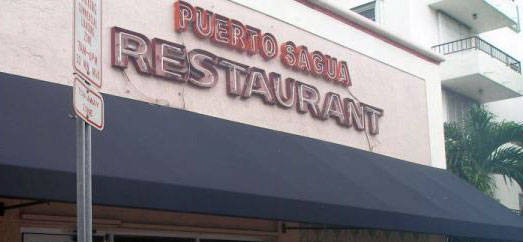 All’altezza della settima strada, ho istintivamente virato verso la strada parallela, Collins Avenue e lí, in mezzo a negozi meno alla moda di Ocean Drive, con in “svendita” a 10 dollari quattro T-shirt con la scritta Miami Beach (senza Iva per chi paga in contanti), ho trovato il Puerto Sagua Ristorante. Niente di spettacolare, credetemi, ma seppur a me non noto, apparentemente molto popolare tra la comunitá Latina di Miami, cioé quasi l’intera popolazione, essendo Miami una cittá piú Latina che anglo. Infatti, il tassista al quale ho chiesto di portarmi il giorno dopo per fare la foto che vedete in basso, lo conosceva benissimo.