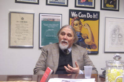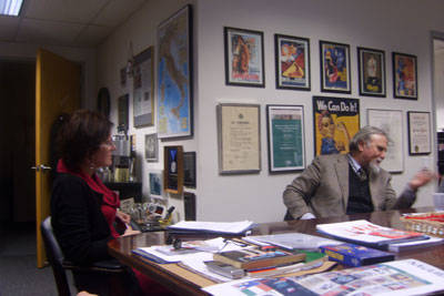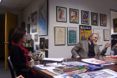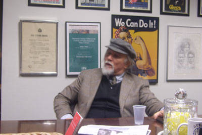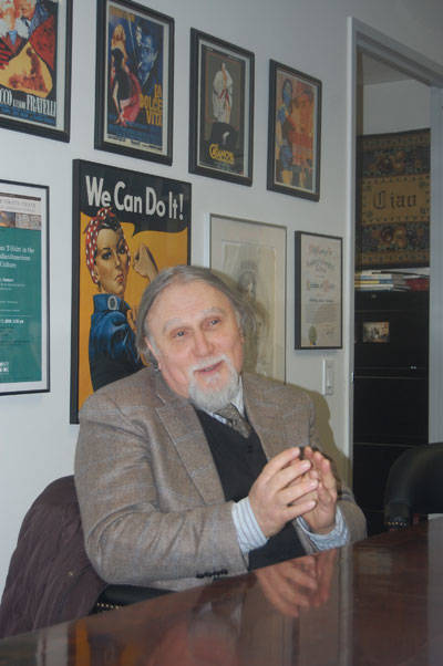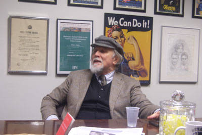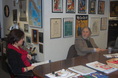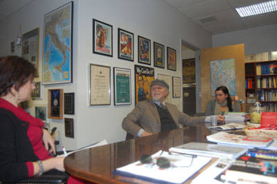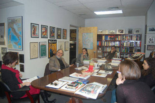 Subito a suo agio. Per nulla stanco. Nonostante sia arrivato da Roma solo un paio d’ore prima. Ha accettato con entusiasmo l’idea di venire al Calandra a trovare la redazione di i-Italy. Accompagnato da Natalia Indrini, direttrice del Centro Primo Levi, rimane a parlare per più di tre ore con noi.