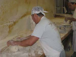Our first stop on Saturday was Tony & Tina’s Pizzeria. Though Italian food was the theme of the day, Tony & Tina’s specializes in Albanian burek, flaky pies filled with cheese, spinach, pumpkin, or meat. We stopped at the kitchen to watch the workers expertly spin wads of dough into sheer sheets of pastry similar to fillo, and stuff them with a blend of feta and ricotta cheeses. Susan had arranged for us to have a taste, and we were soon munching on thick, hot slabs of crunchy, cheesy burek.