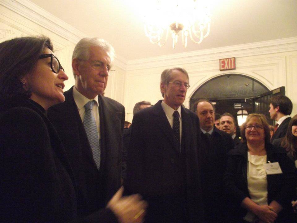 “Per la prima volta un rappresentante del governo italiano è visto come testimonial non solo del suo paese, ma dell’Europa intera”, ha detto Claudio Angelini me, presidente della Società Dante Alighieri a New York ed ex corrispondente RAI. “L’Italia era considerata il corpo malato d’Europa e grazie a Monti si è riscattata, al punto che l’America le riconosce la titolarità di questo ruolo di rappresentanza dell’Unione Europea”.