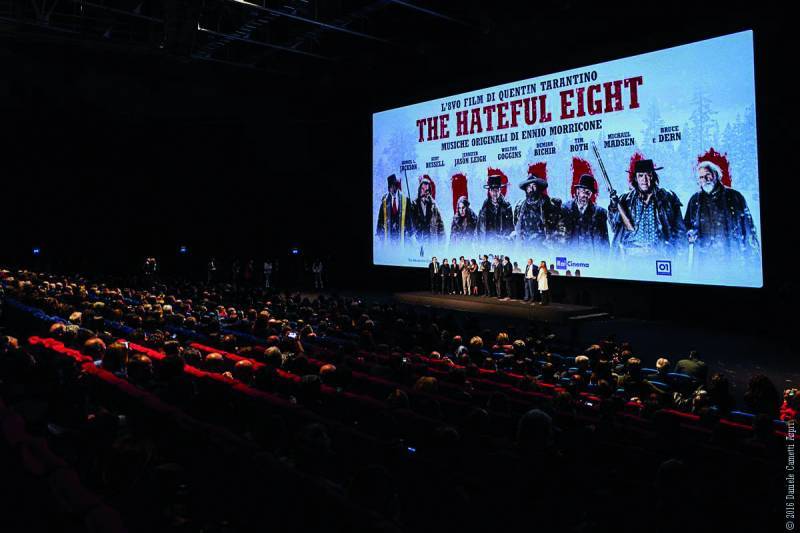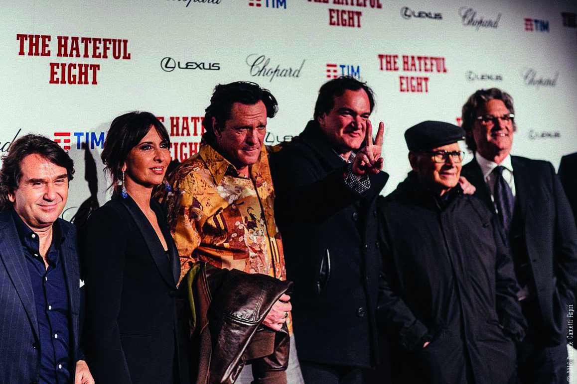 The Italian premier of Quentin Tarantino’s “The Hateful Eight” last January 28 was only the latest in a slew of developments at Cinecittà. The director himself attended the screening in the mythic Teatro 5, along with Kurt Russell, Michael Madsen and Ennio Morricone. The even was all about numbers: 888 invitees flowed into Teatro 5 to watch a 70mm film featuring 8 stars in a 188 minute long movie with a 12 minute intermission and a 3:48 overture by maestro Morricone.