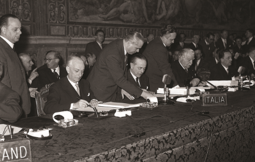 The signing of the Treaties by the founding fathers of the European Union, in 1957, marked an unprecedented historical moment, setting Europe on a common path of cooperation and development. Italy was one of the signatories, together with France, the Federal Republic of Germany, Belgium, the Netherlands, and Luxemburg.