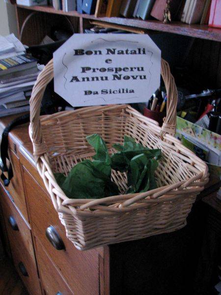 As already noted, guests to our annual party get small presents from my wife who this past summer picked them up in Palermo. One of my holiday jobs is to make the gift basket sign in the language of the country we visited. Other important annual tasks are putting the star on the top of the Christmas tree while teetering on a rickety step ladder and trying not to say "Bah humbug!" or express equivalent sentiments throughout the Holiday Season despite feelings to the contrary. It has been especially hard to smile during the Senate debate on whether their fellow Americans deserve the same free health care that they enjoy at our expense.
