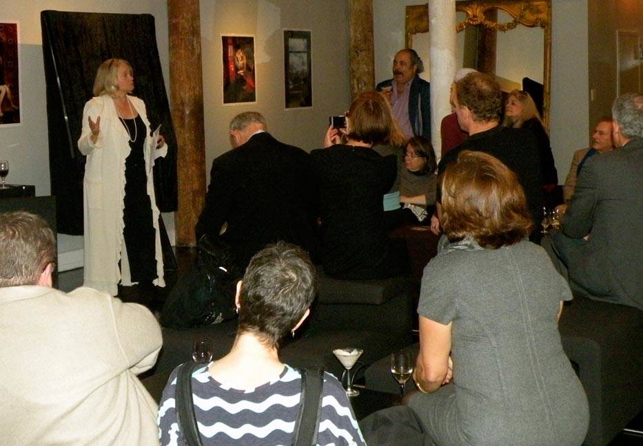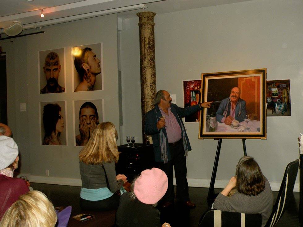 At an event about Fred Plotkin, the attention for food and wine was obviously very high. Smoked salmon napoleons, braised short ribs with grit cakes, and dried figs with prosciutto. The wine was personally picked by Fred, a 2005 Mastro Janni Brunello di Montalcino, and a 2009 Pinot Grigio Verdi. But it wasn't the superb wine to make us see two Fred Plotkins in the room: at lly issimo Authenticity Lounge, Fred wore the outfit he has in Betsy's canvas. Coincidently, in the painting he is sipping an Illy coffee, “not an americano despite the big cup,” he stressed, “it was a double espresso!”.