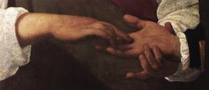 The exhibit in New York will be on view thanks to a loan from the Musei Capitolini in Rome, Italy, to which it belongs since 1750 when Pope Benedict XIV purchased it. Two version of the painting exists, the one being shown on Park Avenue these days from 1594, and another, in Paris at the Louvre, painted the following year. Although the dates in both cases are disputed. The painting shows a foppishly-dressed boy, having his palm read by a gypsy girl. The boy looks smugly pleased as he gazes into her face; he fails to notice that she is removing his ring as she gently strokes his hand; to his ingenuous self-satisfied gaze she returns her own, quietly mocking and sly.