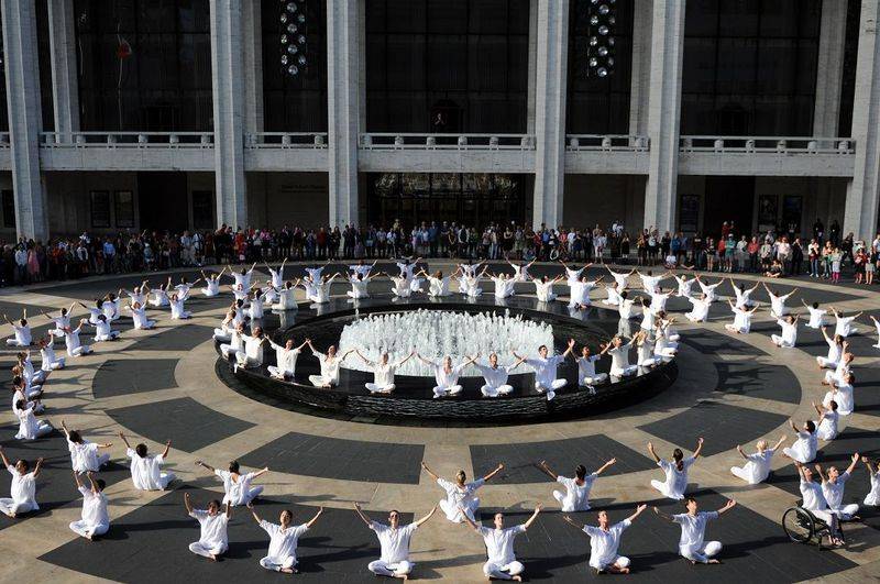 In partnership with Dance/NYC and the September Concert, Buglisi Dance Theatre brings together over 100 dancers to gather in silent procession, forming patterns of concentric circles to create a peace labyrinth while encircling the Revson Fountain as a symbol of eternity, compassion and continuity of the life cycle. At 8:46 am, the dancers will turn their wrists with open palms and extend their arms to the sky for one minute, evoking the simple gesture of universal peace. Spectators are invited to join them in this ritual.