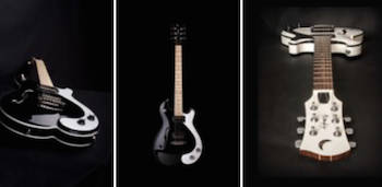 Other features include the Butterfly's carved maple top and mahogany back and a one-piece mahogany neck with a long neck tenon. The Left of Center Signature model comes in a black body with a white pick- guard, and a second version using the opposite colors, an outstanding elegant white creature with black fine lines in his unique design.