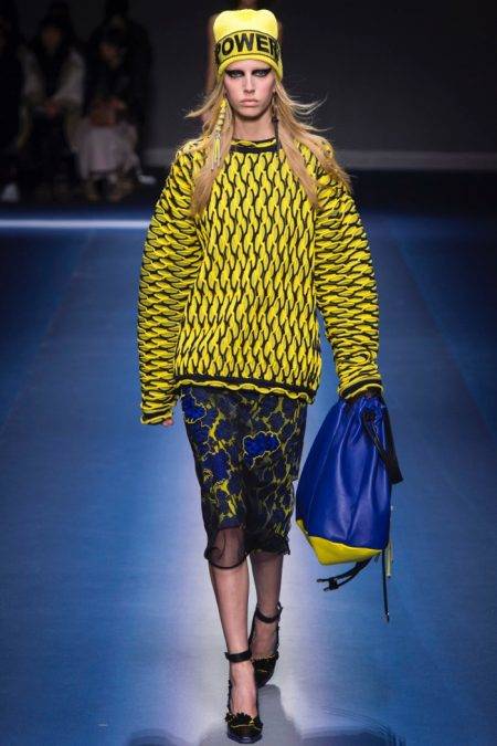 The latter color combo of yellow-black is featured in the sporty Versace Fall 2017 ready-to-wear collection, while Gucci’s offers up elegant yellow florals.