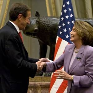 Italian American politician Nancy Pelosi visits Italy after Obama’s election. The President of the Italian Chamber of Deputies Gianfranco Fini donates to her a copy of the rare and precious book “Michelangelo. La Dotta Mano” by FMF